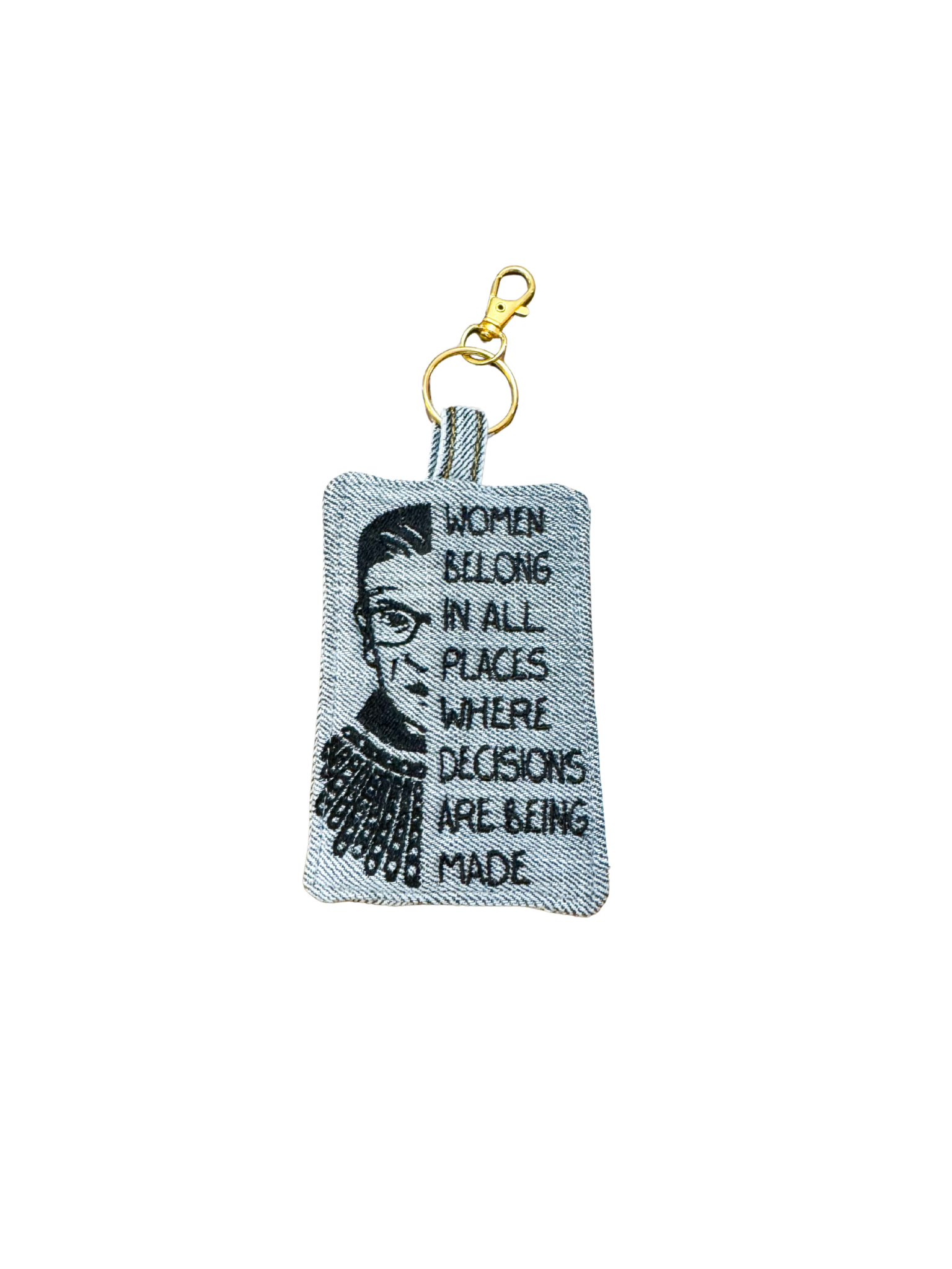 Machine embroidered on recycled jeans denim. Perfect for adding to your purse, tote or keys.
