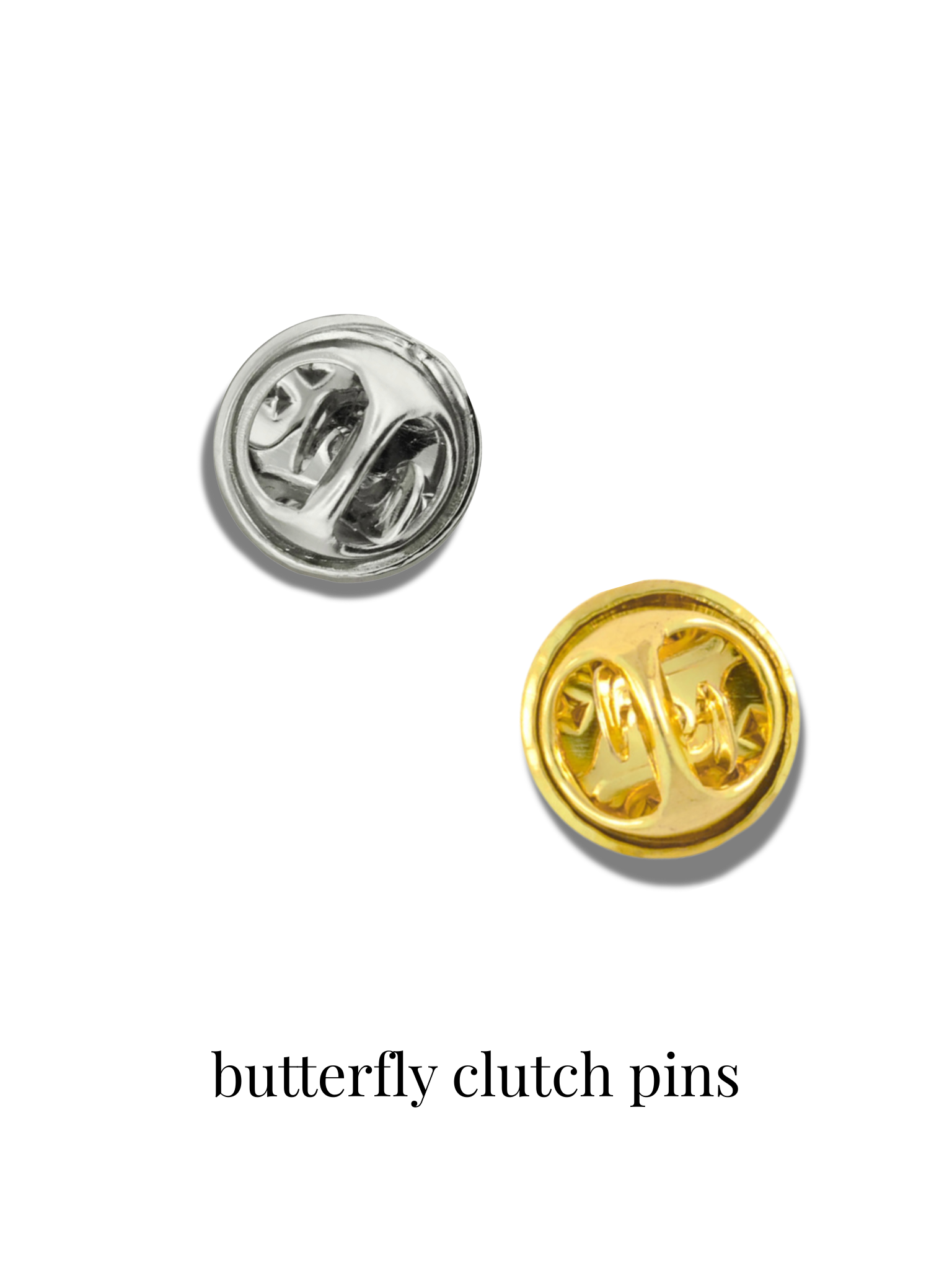 Choose either a silver or gold butterfly clutch clasp.