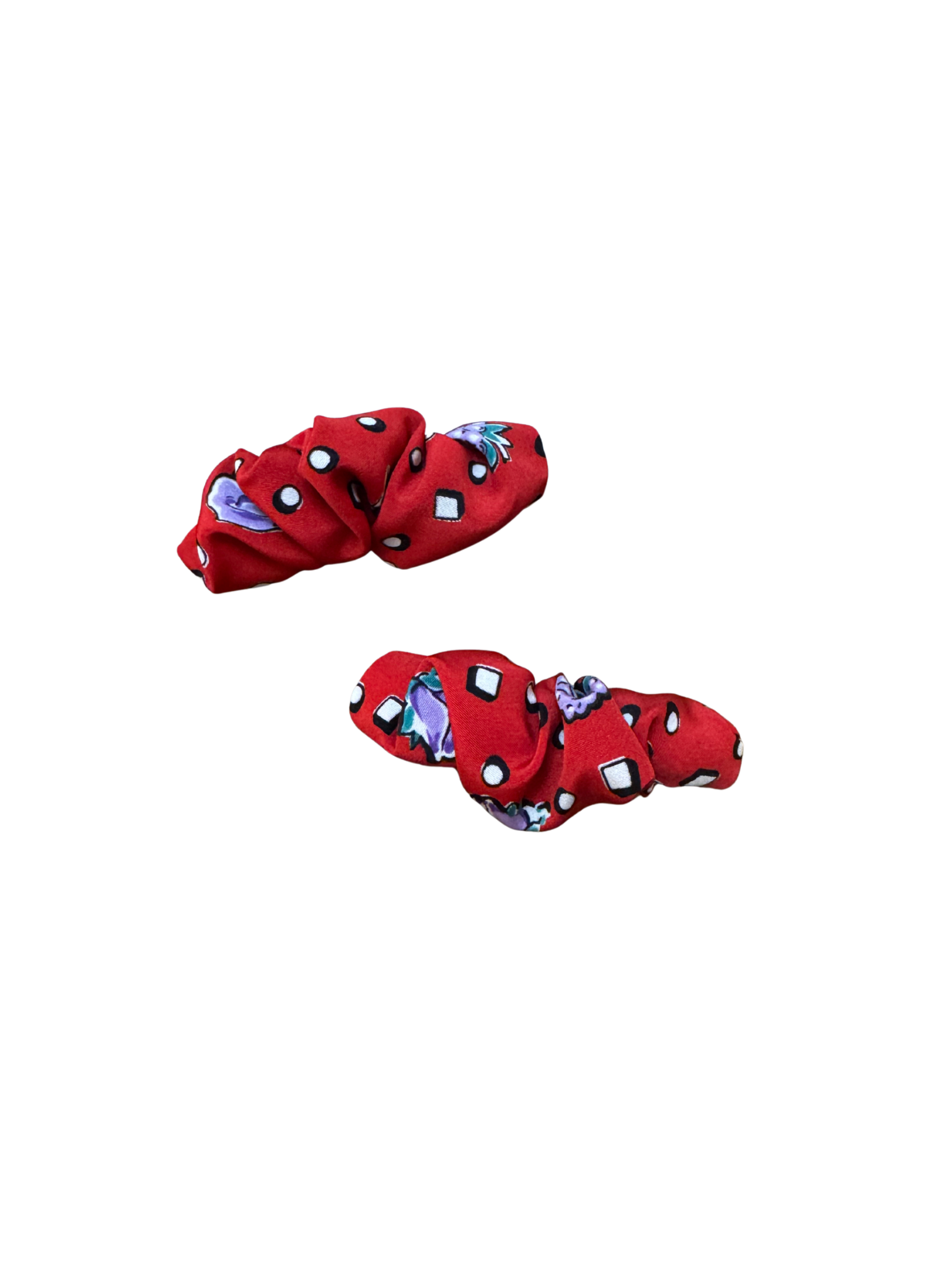 These scrunchie barrettes come in sets of two, perfect for adorning buns, braids, and pigtails.