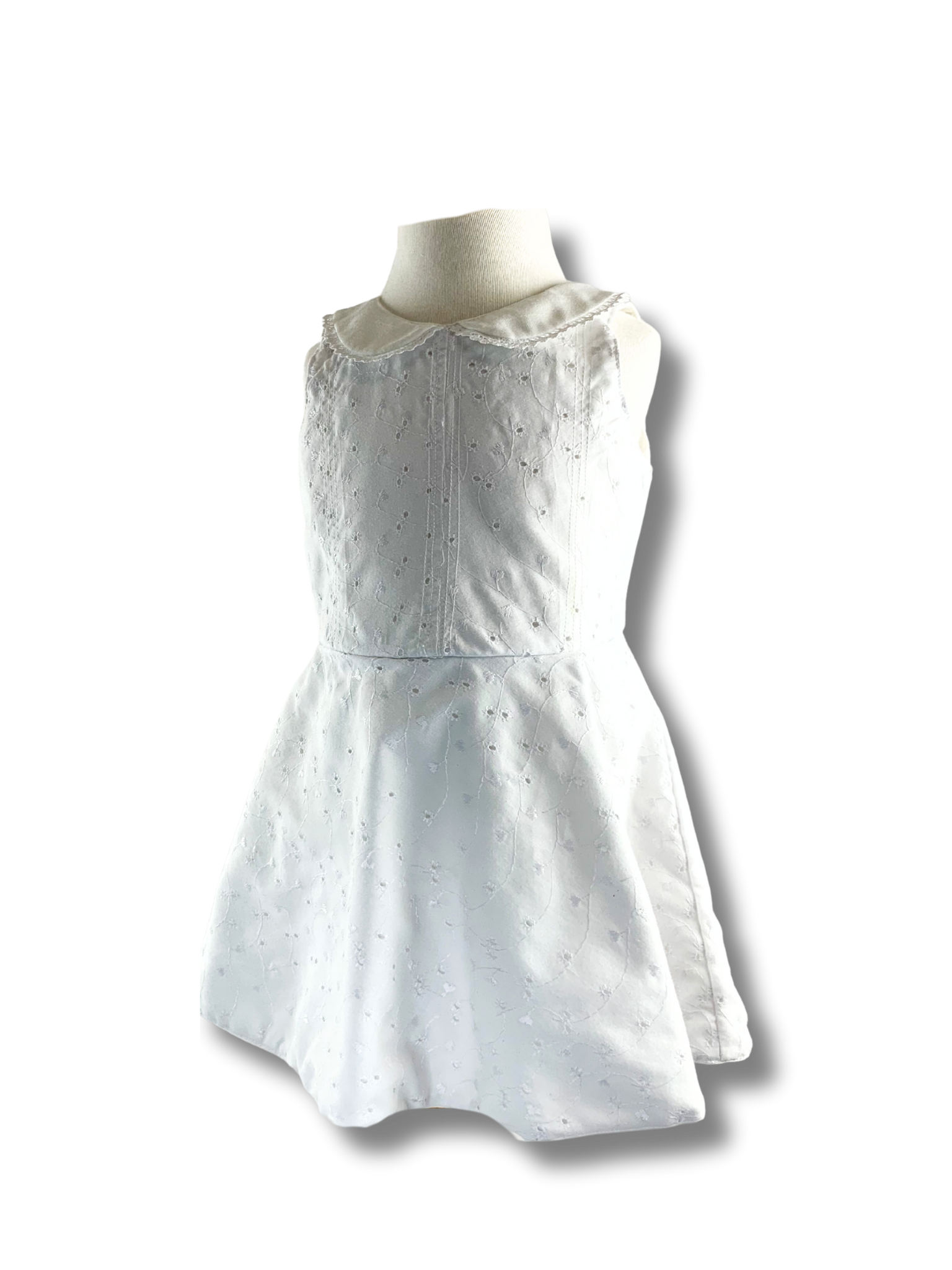 Vintage style dress featuring a Peter Pan collar and circle skirt. A zipper in the back makes it easy to put on.