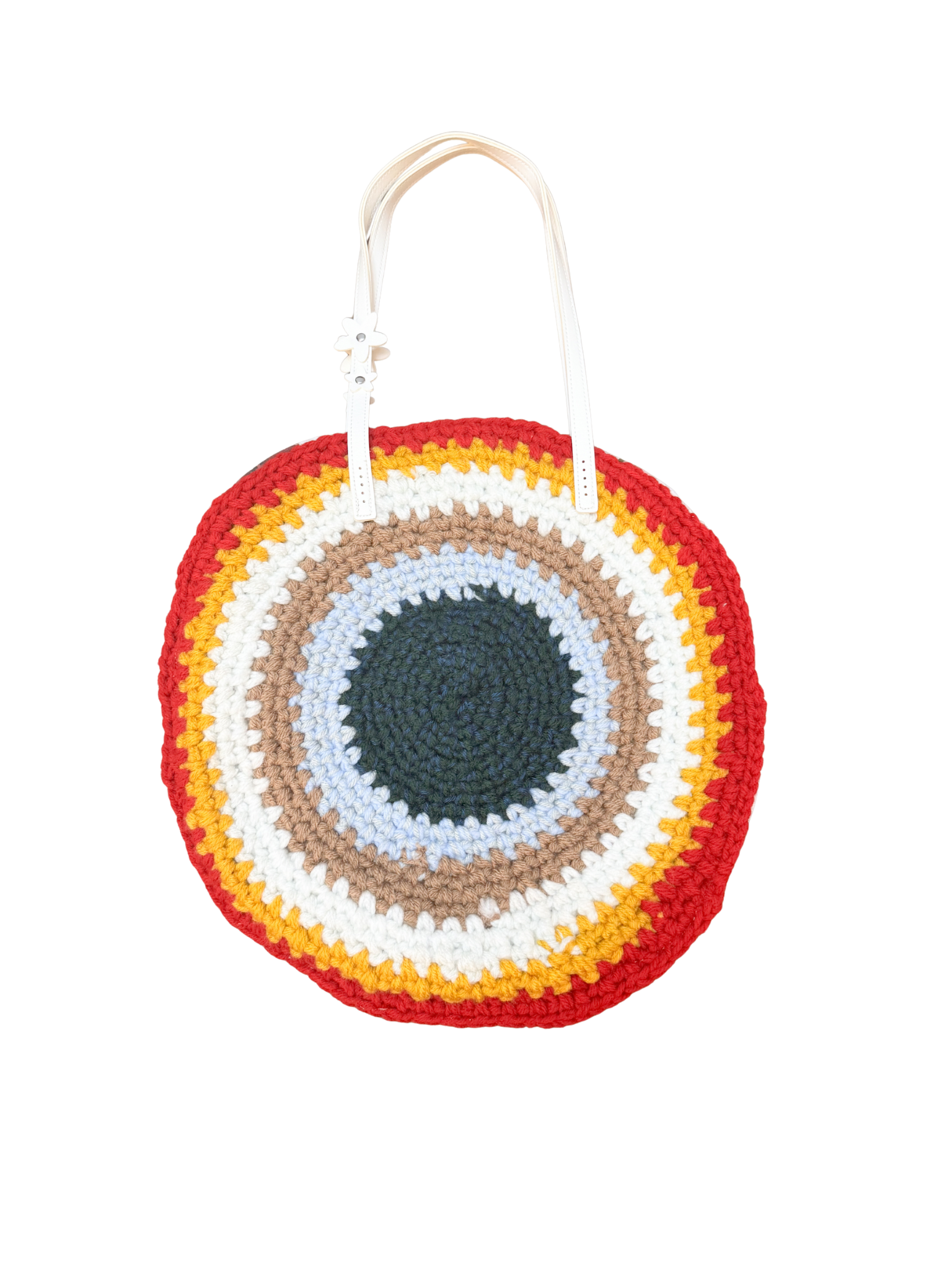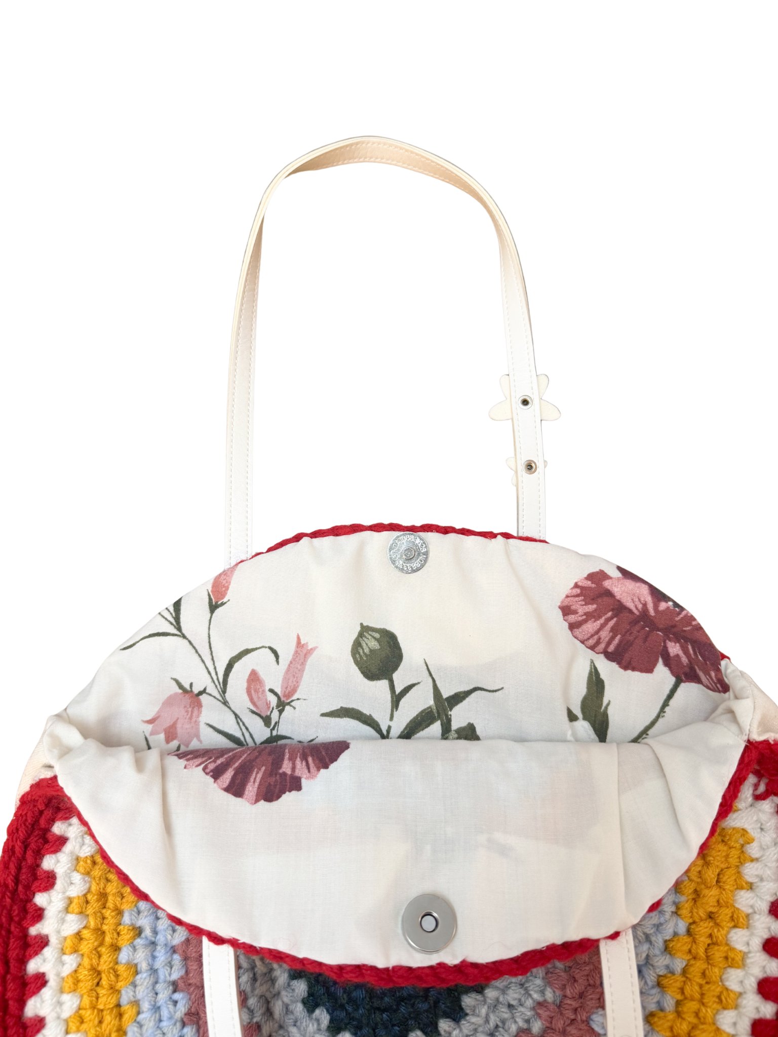 This crochet handbag is made from thrifted hand made crochet placemats and vintage handles.