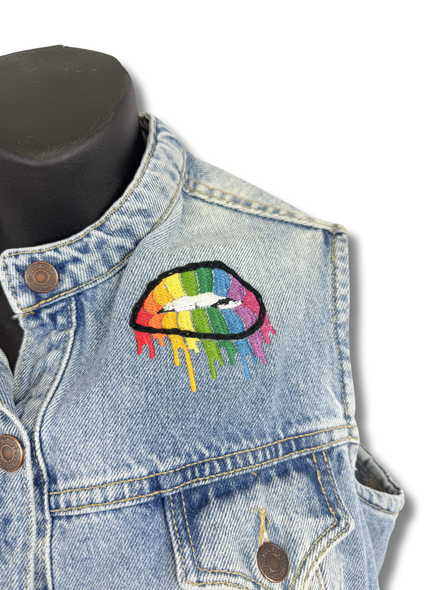 One of kind pieces. Secondhand denim vests that have been transformed with thrifted and upcycled fabrics to create something new and custom.